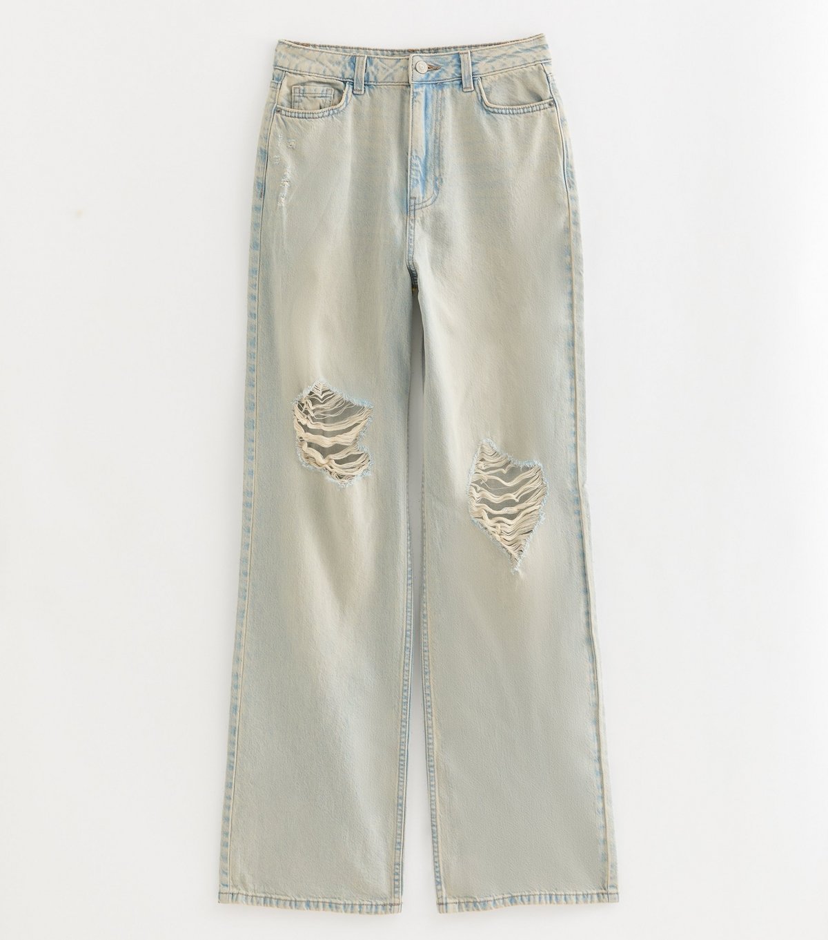 Stylish light blue ripped jeans by New Look. Featuring a high waist, relaxed fit, and full length, these jeans are perfect for weekend wear and day-to-evening transitions.