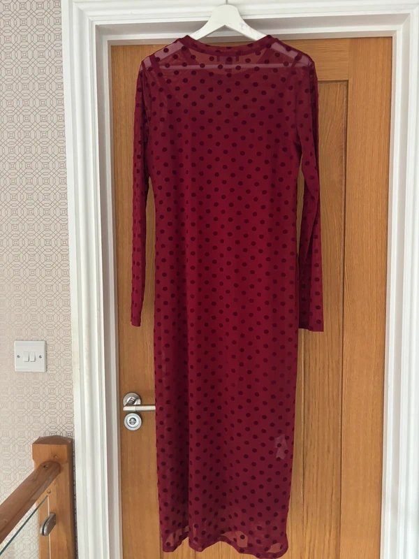 The New Look Burgundy Three-quarter Length Velvet Dress is available in sizes L.