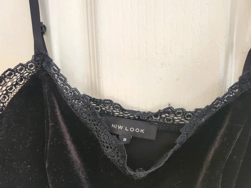 Stylish black velvet leotard top from New Look. Features lace trim around the neckline and straps for a delicate touch. Perfect for adding a touch of elegance to your wardrobe.
