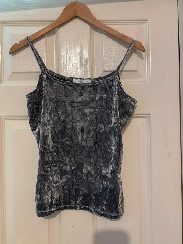 The New Look Vintage Crushed Velvet Silver Top is available in sizes M.