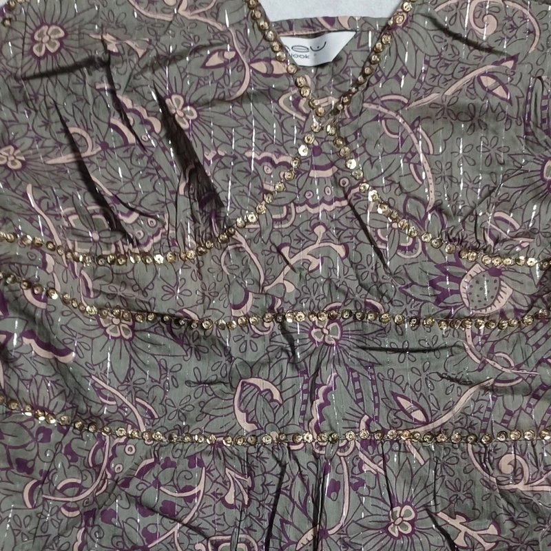 This V-neck, lightweight blouse features sequins and beads, giving it a boho look. The khaki green hue complements its patterned design, perfect for any casual outing.