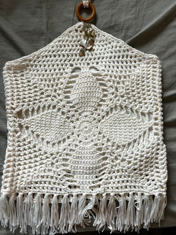 This vintage halter neck top from New Look is an insane crochet creation with wooden detailing and shell/bead attachments. Double-lined on the front, it offers some stretch and fits UK sizes 8-10.