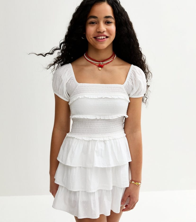 The New Look White Puff Sleeve Mini Dress is available in sizes 10 years, 11 years, 12 years, 13 years, 14 years, 15 years, 9 years.