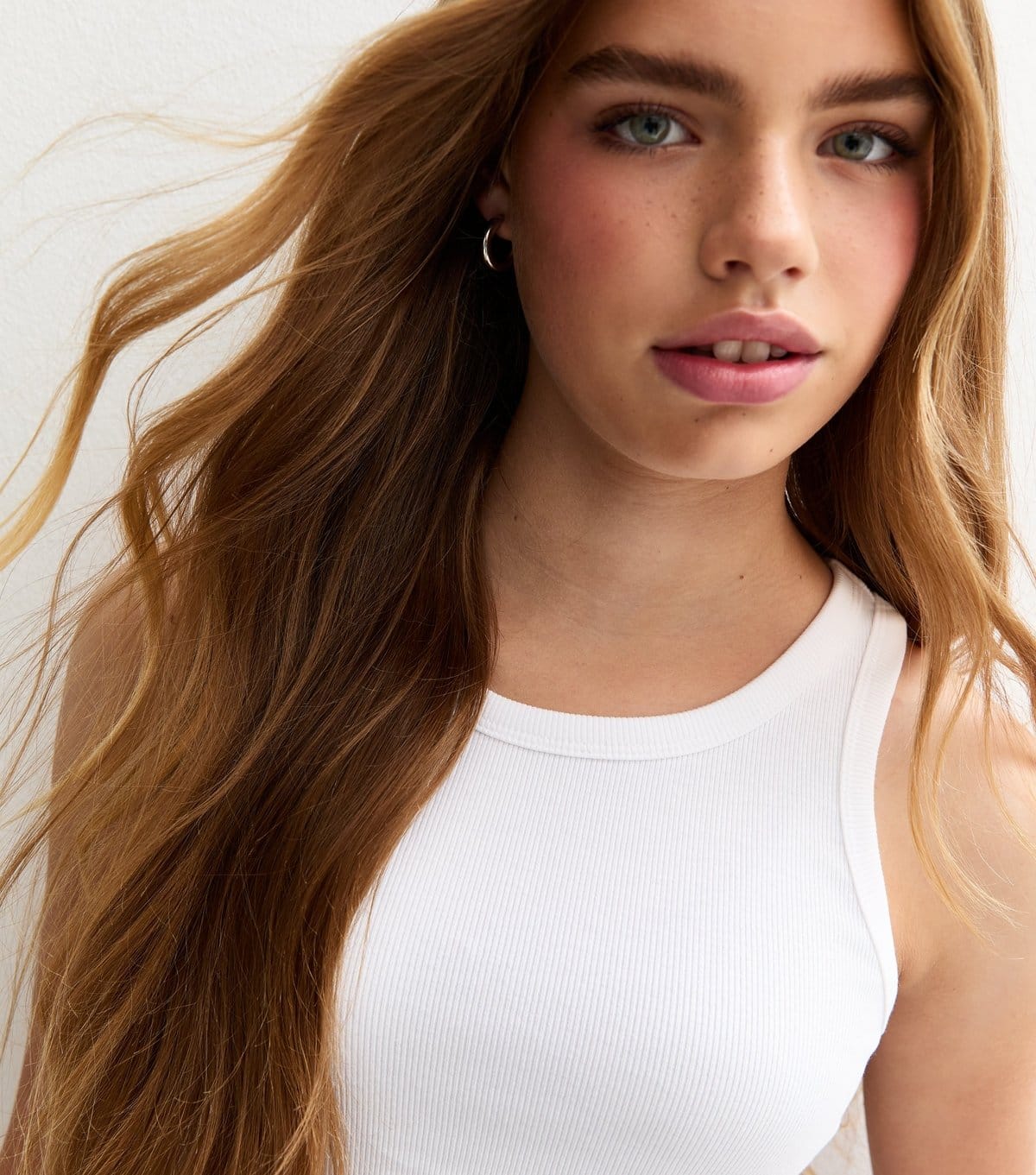 The New Look White Ribbed Racer Back Vest is available in sizes 10-11 years.