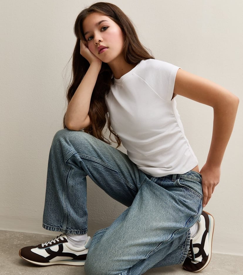The New Look White Jersey T-Shirt for Girls is available in sizes 10-11 YEARS, 12-13 YEARS.