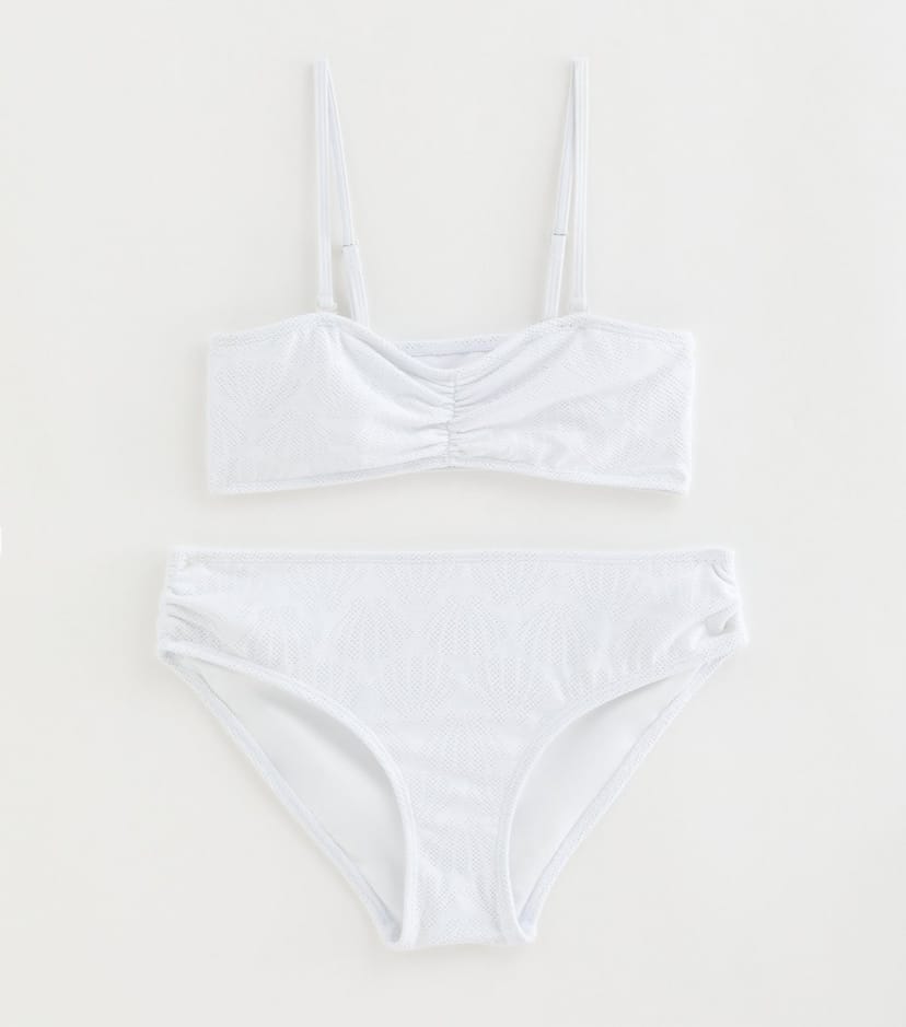 The New Look White Shell Crochet Bikini Set is made from polyester, spandex.