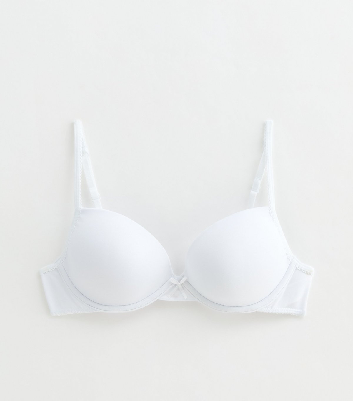 Sleek white underwired t-shirt bra by New Look. Features adjustable straps and foam cups for comfort. Ideal for everyday wear with a back hook and eye fastening.