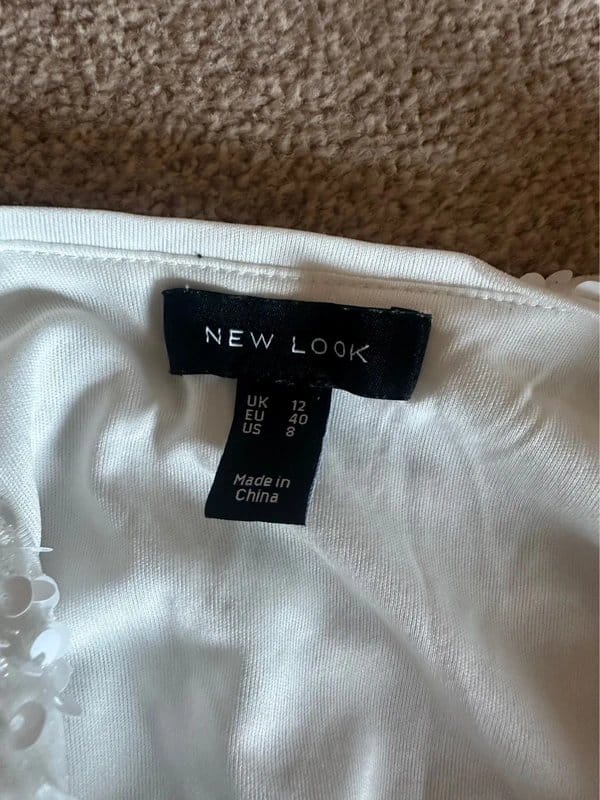 Charming white halter neck dress from New Look, perfect for a special occasion. The dress features a sheer lace trim and a slim fit silhouette. Ideal for evening events or date nights.