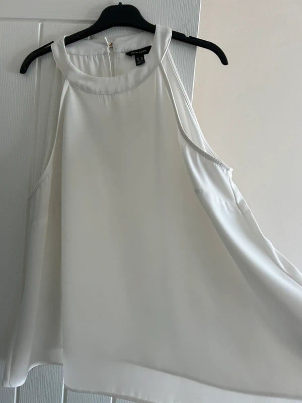 The New Look White Satin Halter Neck Top is available in sizes L.