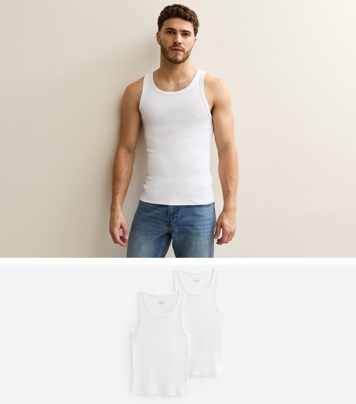 The New Look Men's Pack of 2 White Ribbed Vest Tops is ideal for casual, everyday, work.