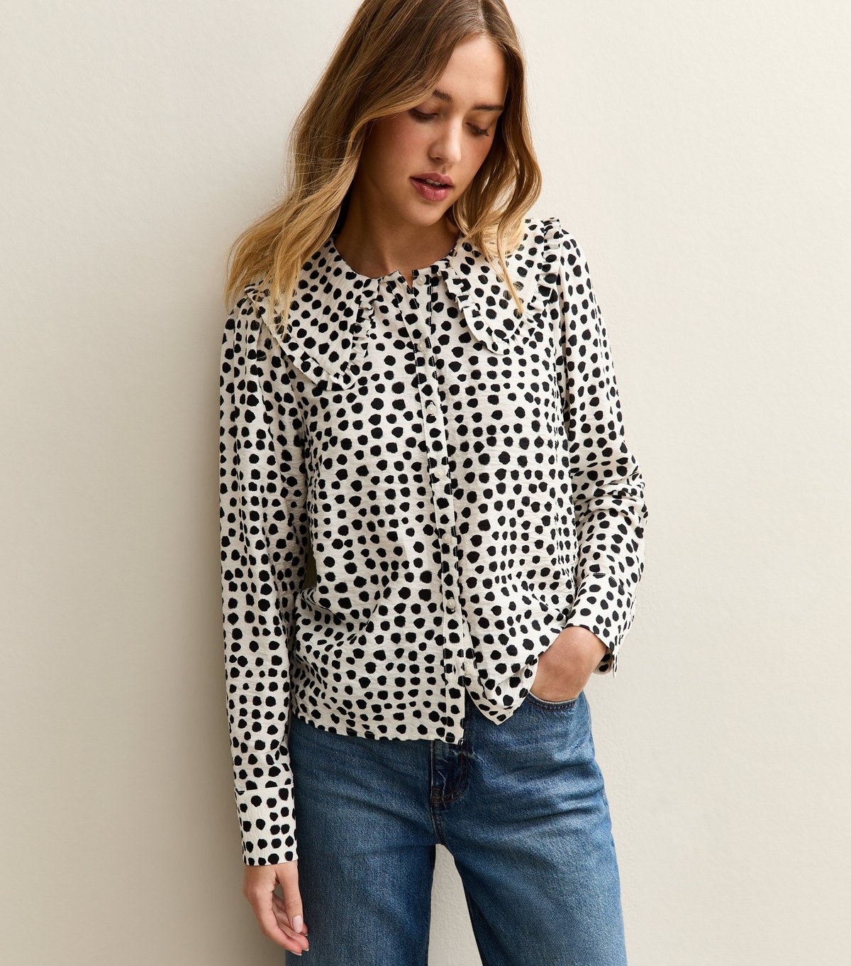 The New Look White Spotty Frill Collar Shirt is ideal for casual, day out.