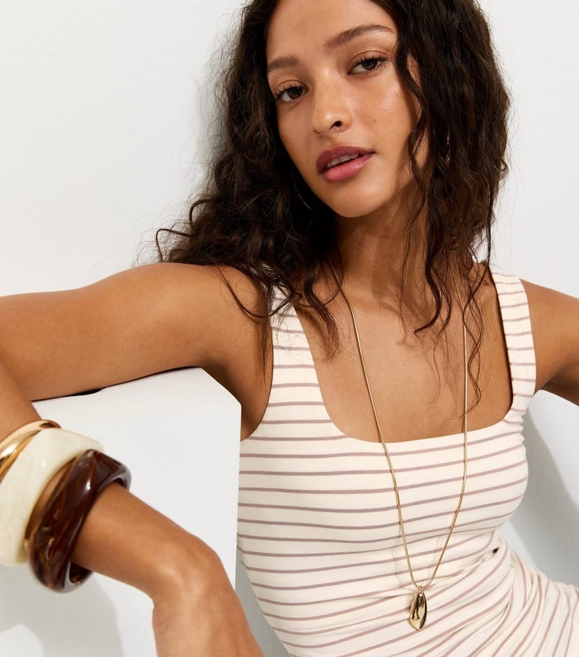 The New Look White Striped Square Neck Vest is made from jersey.
