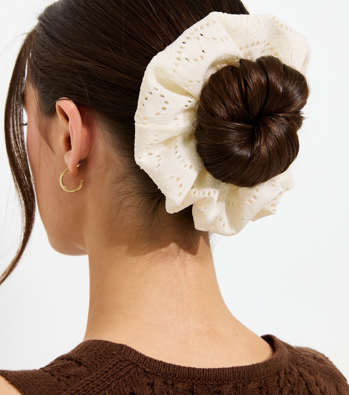 The New Look White Broderie Anglaise Oversized Scrunchie is ideal for casual, everyday.