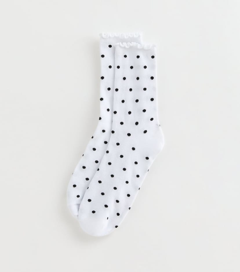The New Look White Polka Dot Frill Trim Socks is ideal for casual, everyday.