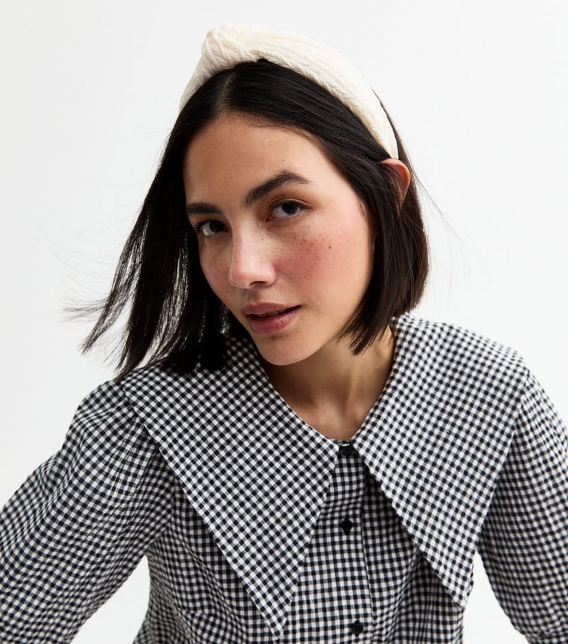 This white textured knot headband from New Look features a unique chevron texture and knot detail. Easy to wear with a slip-on fastening, it adds a distinctive touch to any outfit.