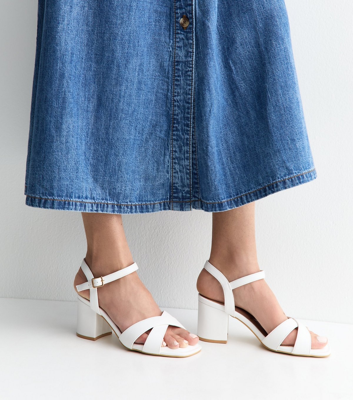 The New Look White Cross Strap Block Heel Sandals is available in sizes 3, 4, 5, 6, 7, 8, 9.