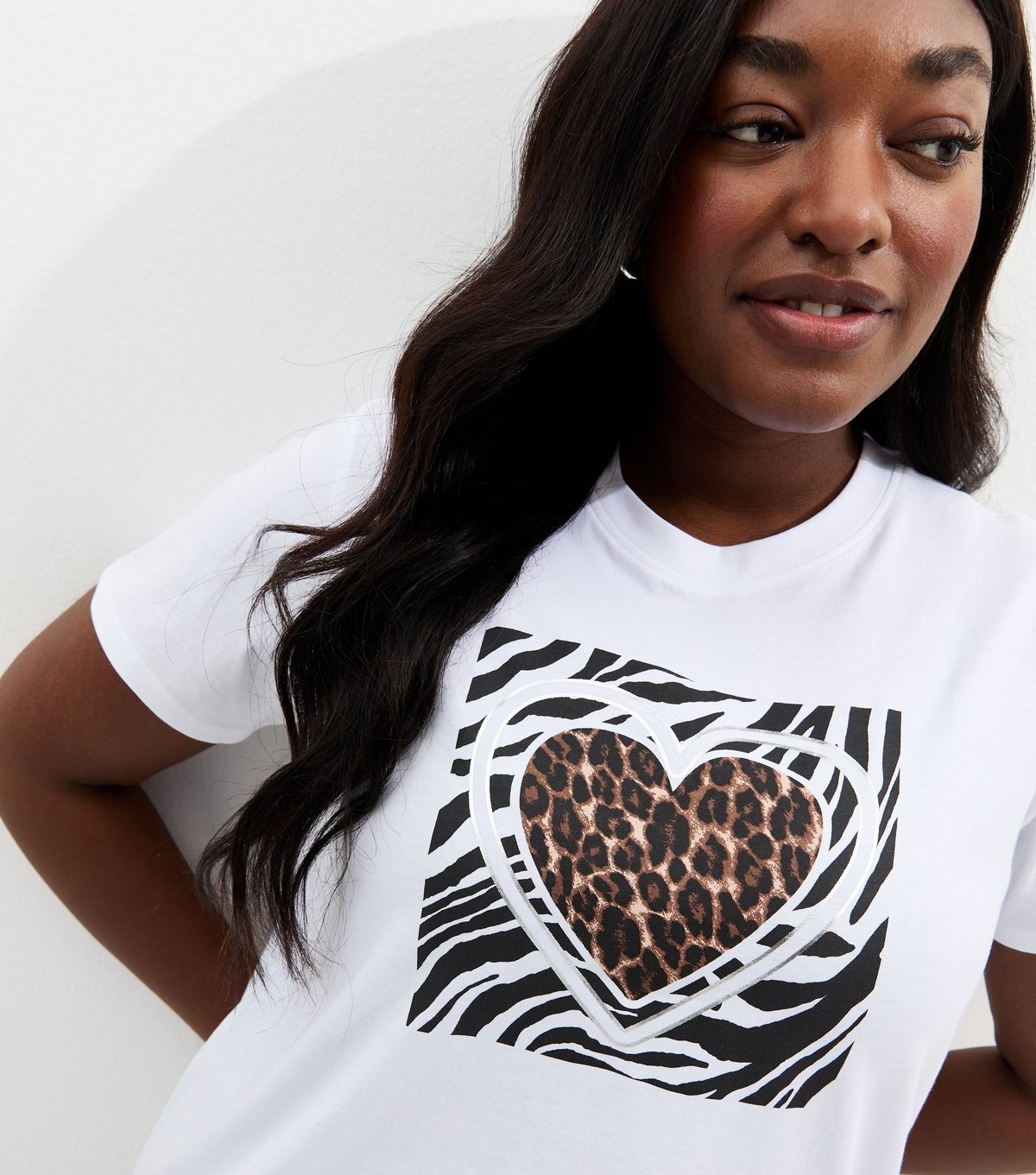 The New Look White Animal Print Heart T-Shirt is ideal for casual, everyday.