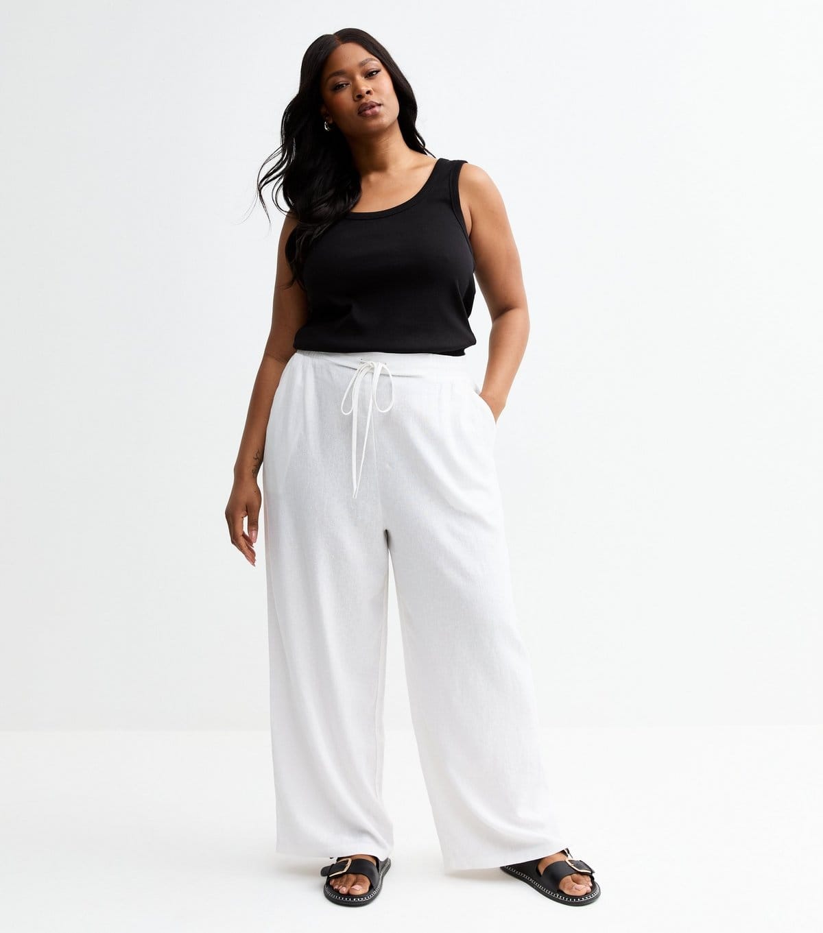 View New Look UK's returns policyEffortlessly stylish wide leg trousers in white linen blend with a relaxed fit. Perfect for casual lounging or running errands in style.