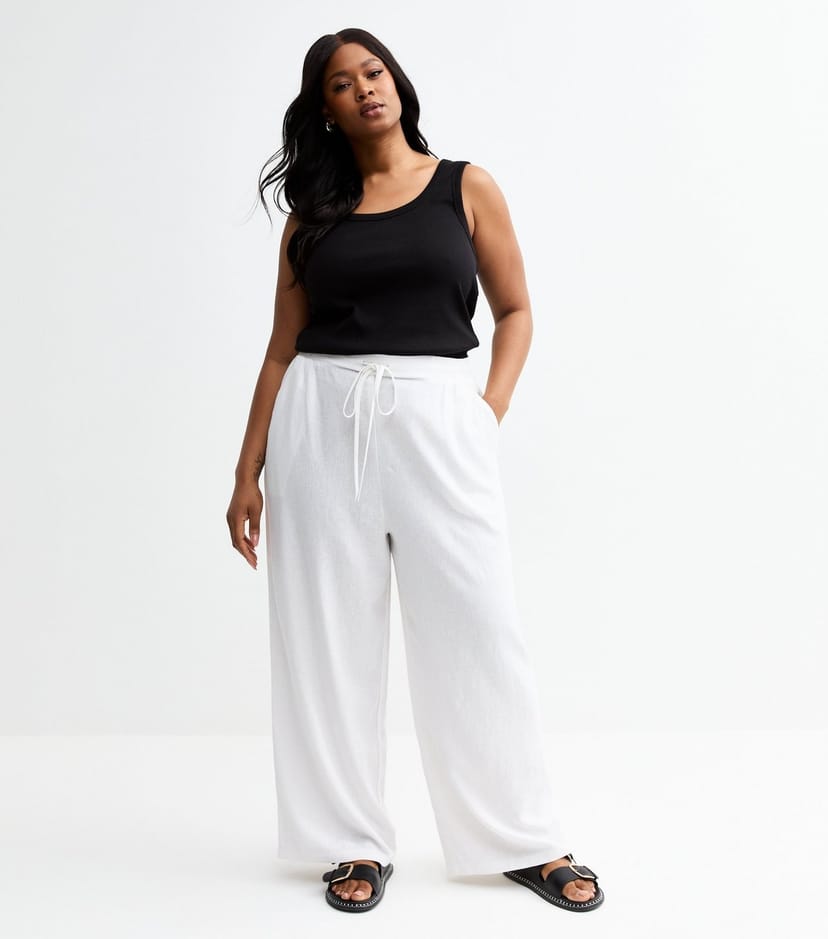The New Look Plus Size White Linen Blend Wide Leg Trousers is available in sizes 18, 26.