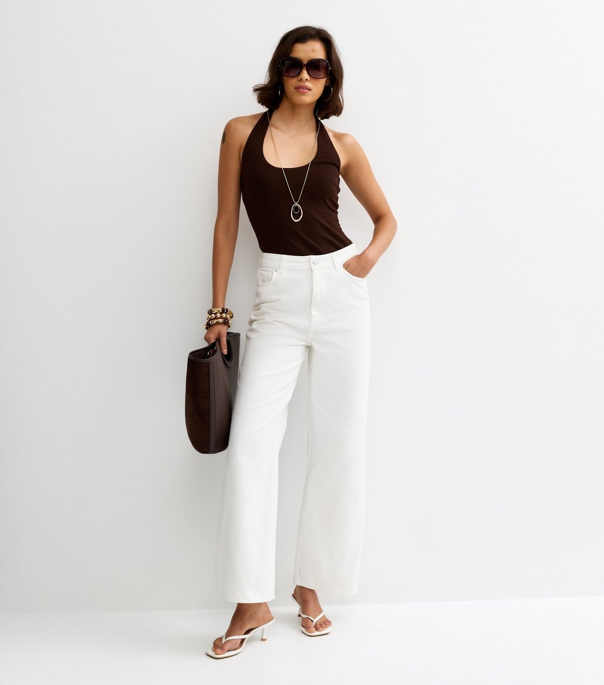 Chic white high-waisted jeans by New Look with a relaxed fit and wide-leg silhouette. Crafted from non-stretch denim, these jeans offer a modern and casual look. Ideal for pairing with tees and blouses.
