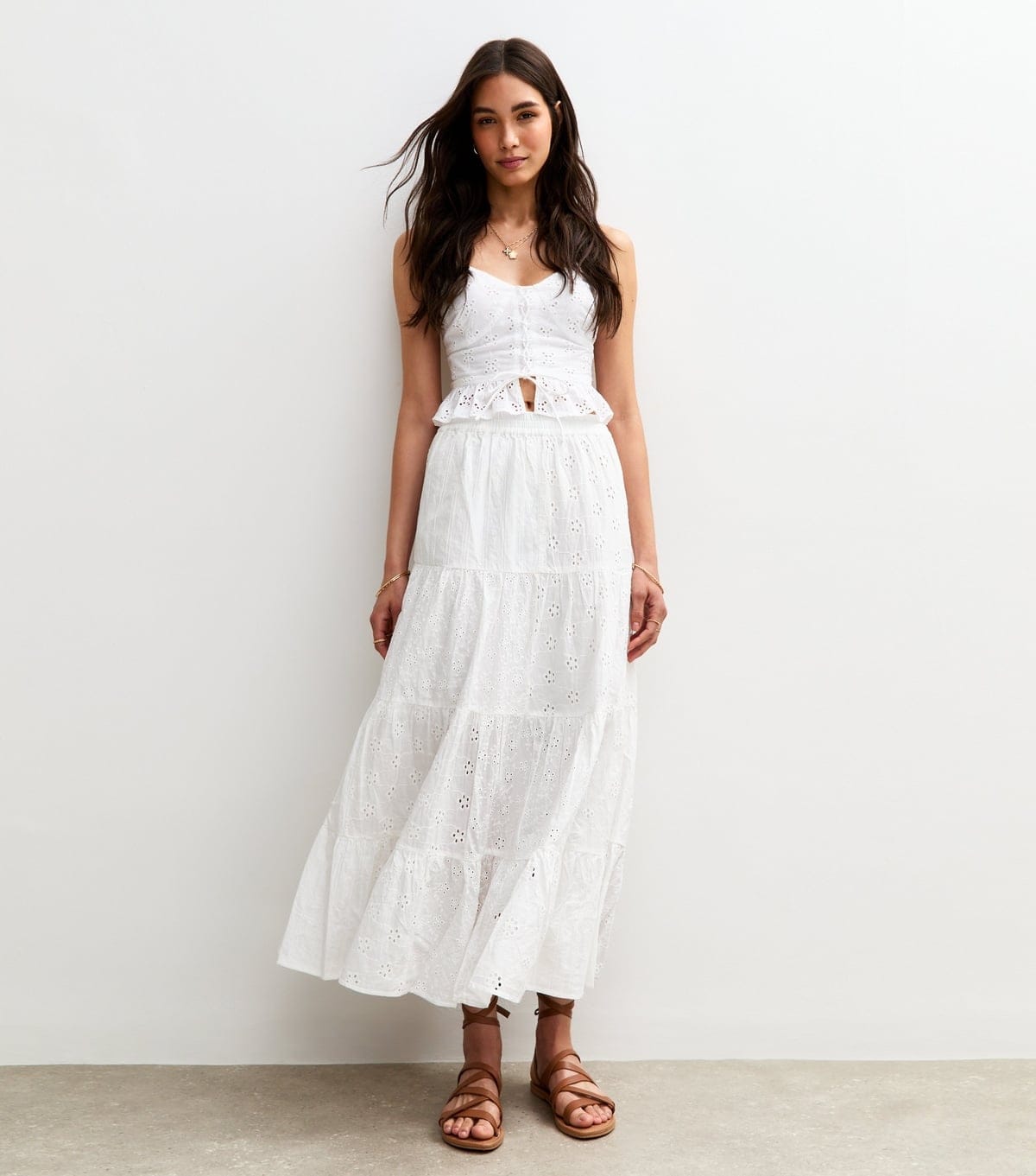 “Pair with a white off-the-shoulder top and brown sandals for a sun-kissed look.”
