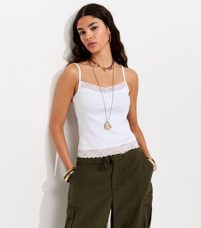The New Look White Lace Trim Cami Top is ideal for casual, everyday.