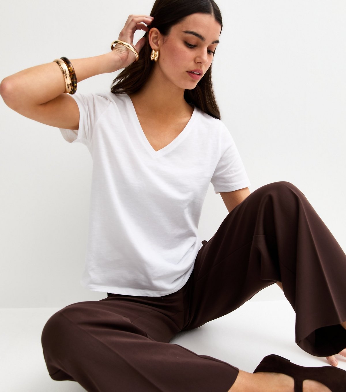 The New Look White Cotton V Neck T-Shirt is made from cotton.
