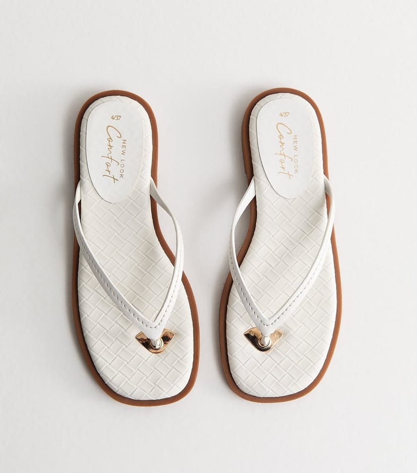 Stylish white crocodile effect faux leather sandals by New Look. Perfect for sun-filled days with their comfortable design. Ideal for beach strolls or casual outings.