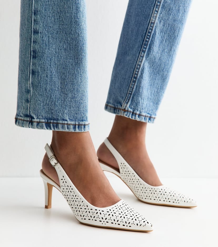 The New Look White Faux Leather Floral Cut Out Slingback Heels is ideal for casual, evening, date-night.