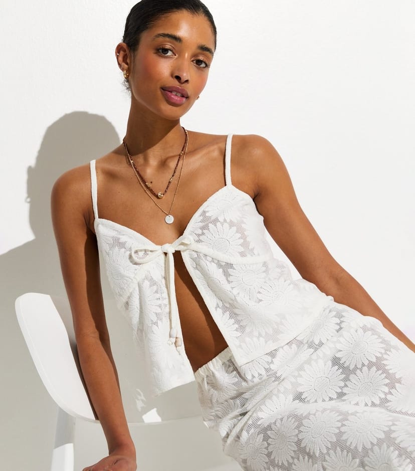 The New Look White Floral Lace Beach Crop Top is ideal for beach, casual, daytime.