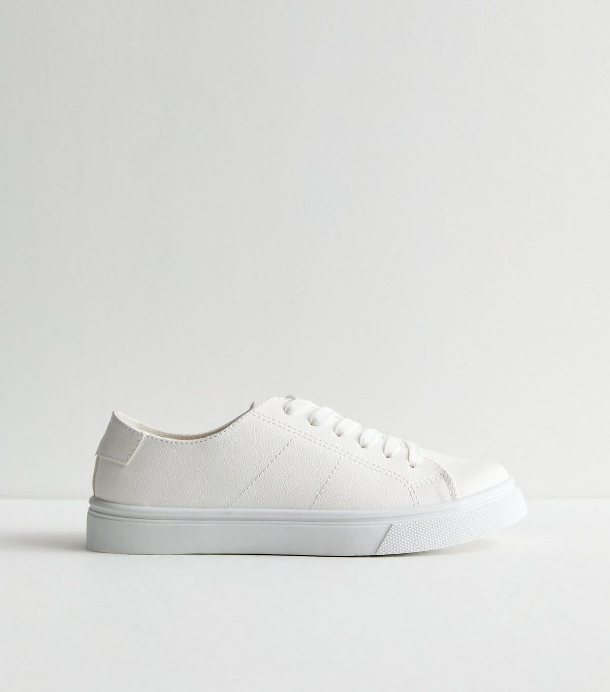 The New Look White Leather-Look Trainers is available in sizes 4, 6.