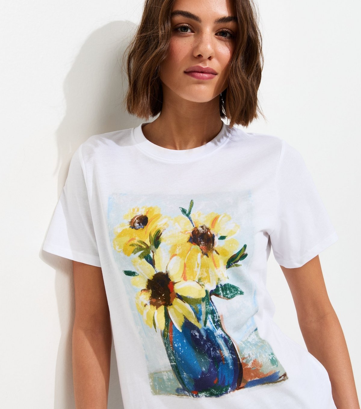 The New Look White Sunflower Print T-Shirt is ideal for casual, everyday.