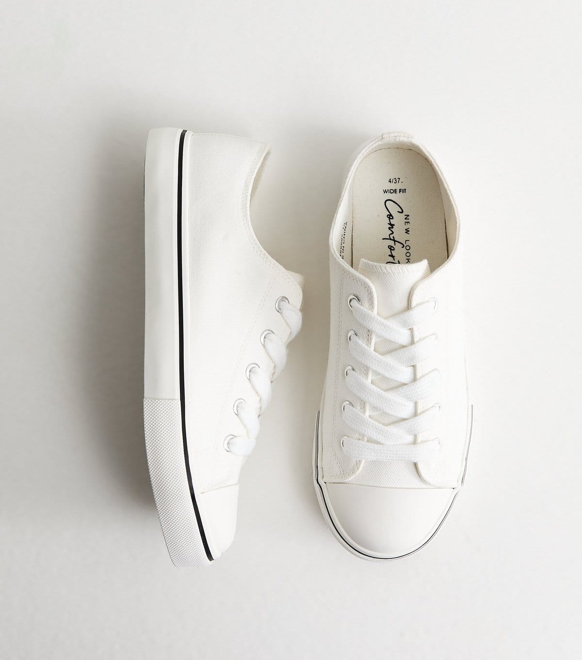 The New Look White Canvas Lace-Up Trainers is available in sizes 4, 5, 6.