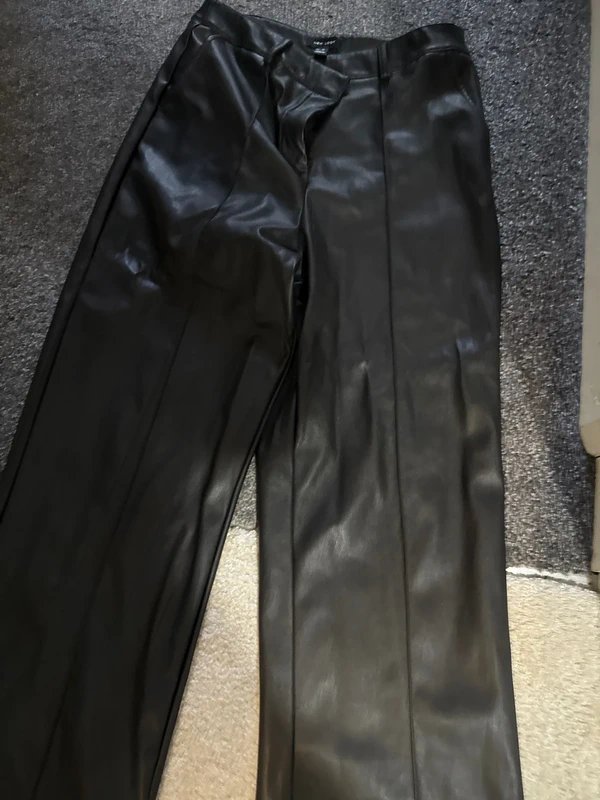 The New Look Leather Look Wide Leg Trousers in Black is available in sizes M.