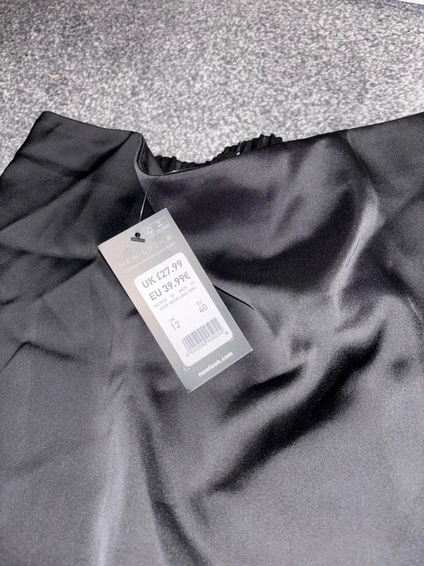 The New Look Black Silk Lace Mini Skirt is available in sizes M.