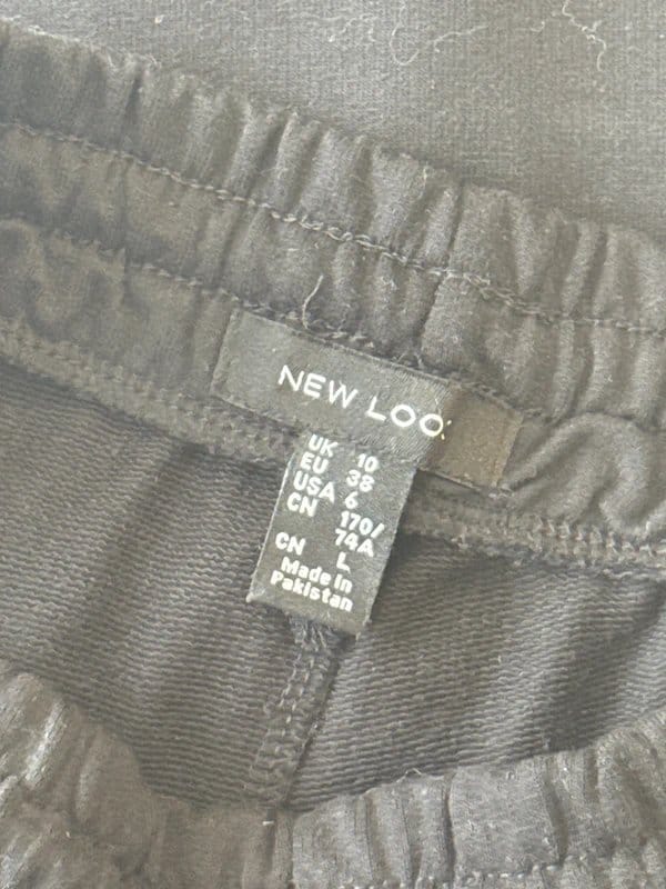 Stylish black and white striped wide leg joggers by New Look. Made from a blend of cotton and polyester, these joggers feature a ribbed waistband and hem for a comfortable fit. Perfect for casual wear or athleisure.
