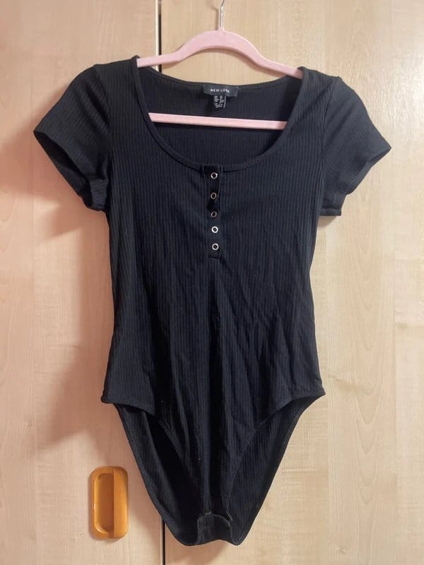 The New Look Short Sleeved Bodysuit in Black is available in sizes S.