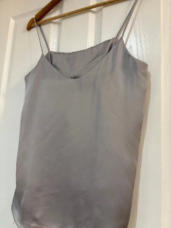 The New Look Silver Satin Camisole Blouse is available in sizes M.