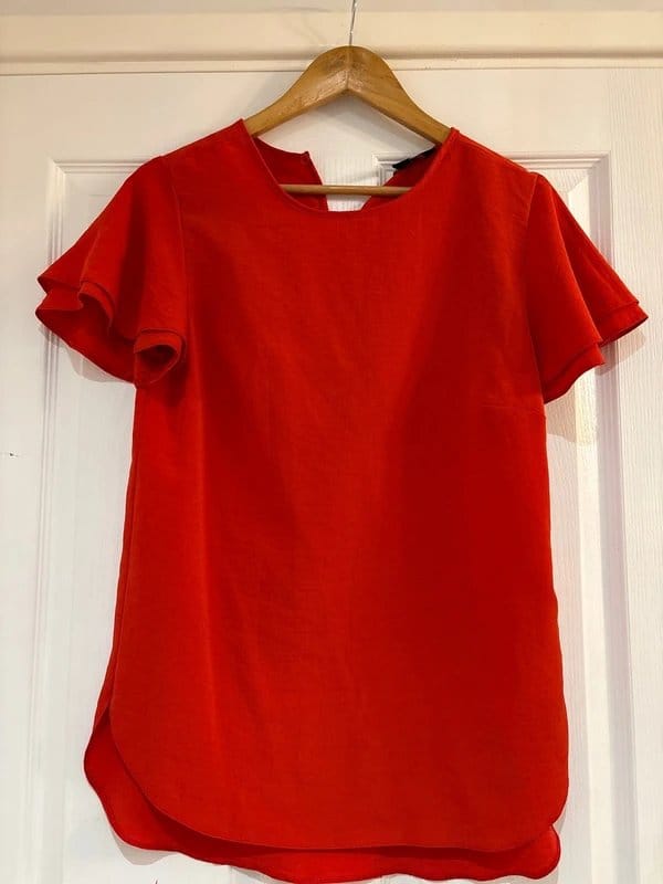 The New Look Red Blouse with Ruffle Detail is available in sizes S.