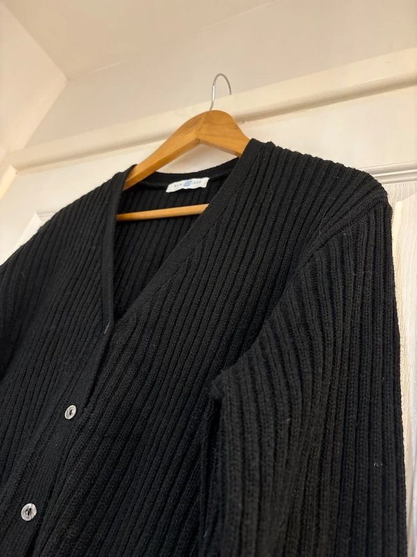 The New Look Ribbed Knit Cardigan in Black is available in sizes M.