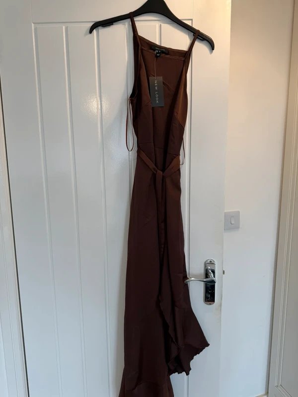 The New Look Satin Midi Dress in Chocolate Brown is available in sizes S.