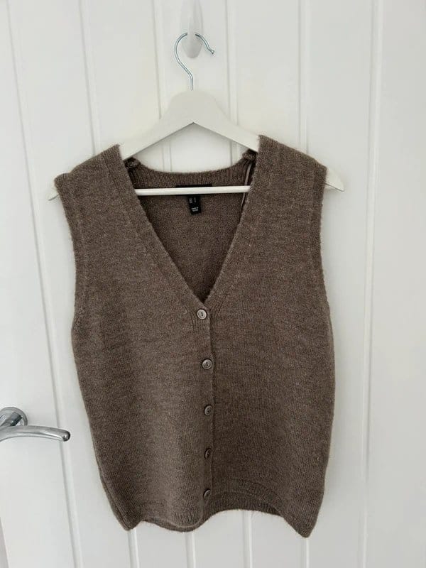 The New Look Brown Knitted V-Neck Sweater Vest is available in sizes S.