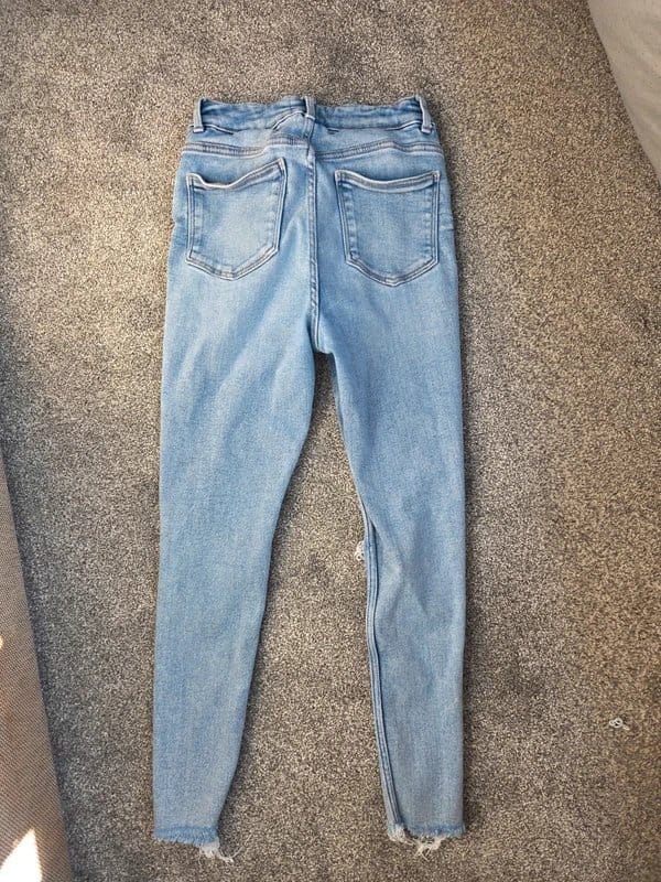 The New Look Light Blue Ripped Skinny Jeans is available in sizes M.