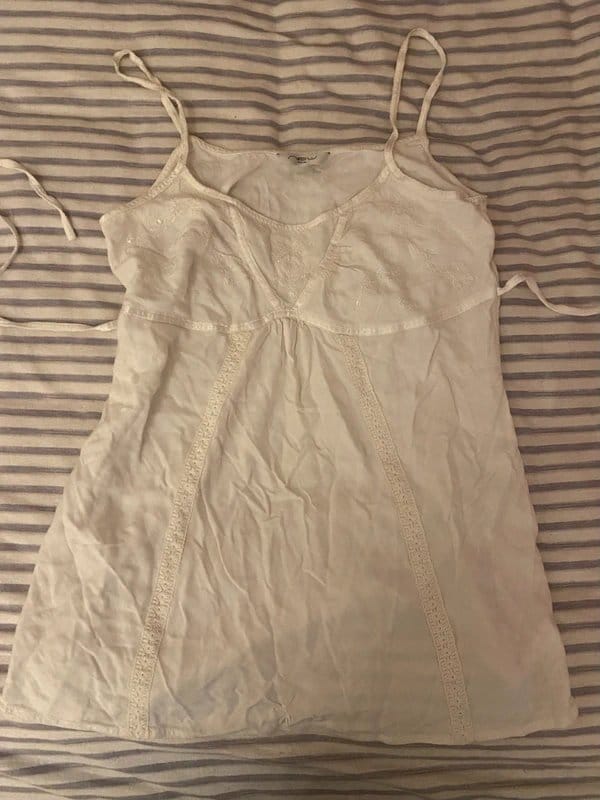 “Pair with high-waisted cream trousers and white sneakers for a laid-back daytime look.”