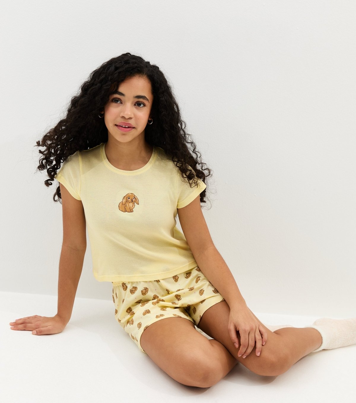 The New Look Yellow Cotton Bunny Pyjama Set for Girls is ideal for sleepwear, casual.