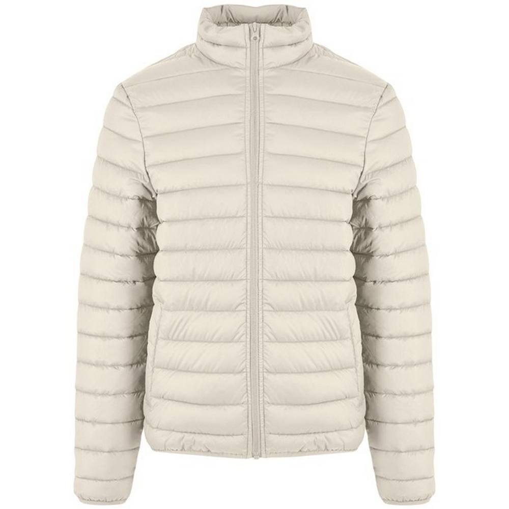 Stylish lightweight puffer jacket in light sand by New Morning Studios. Made from 100% polyester, this jacket features a standing collar, full zip fastening, and a regular fit. Ideal for cool weather.