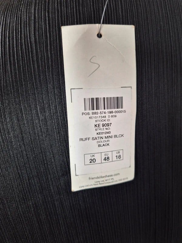 NextNext Black Satin Belted Ruffle Mini Dress Size 20