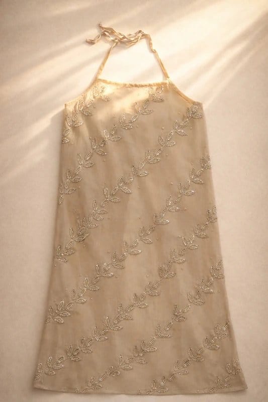 The Night by Birger et Mikkelsen Champagne Nude Beaded Halter Top is ideal for evening, date-night, party.