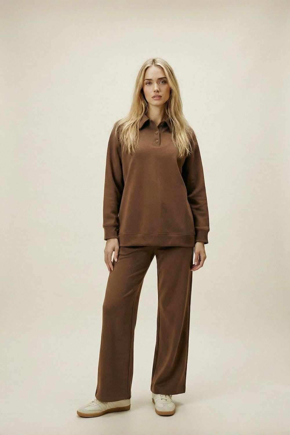Experience luxury loungewear with this chocolate brown button collar trouser set from The Night Store. Crafted from the finest fabric, it offers unparalleled comfort and a sophisticated look. Perfect for dressing up or down.