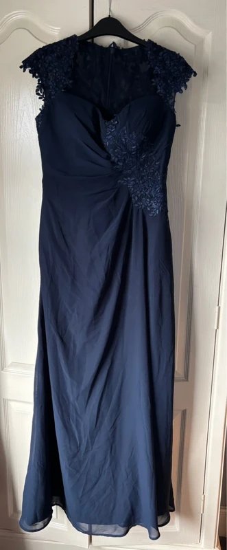 The No Label Midnight Blue Evening Gown with Corset Bodice is available in sizes S.